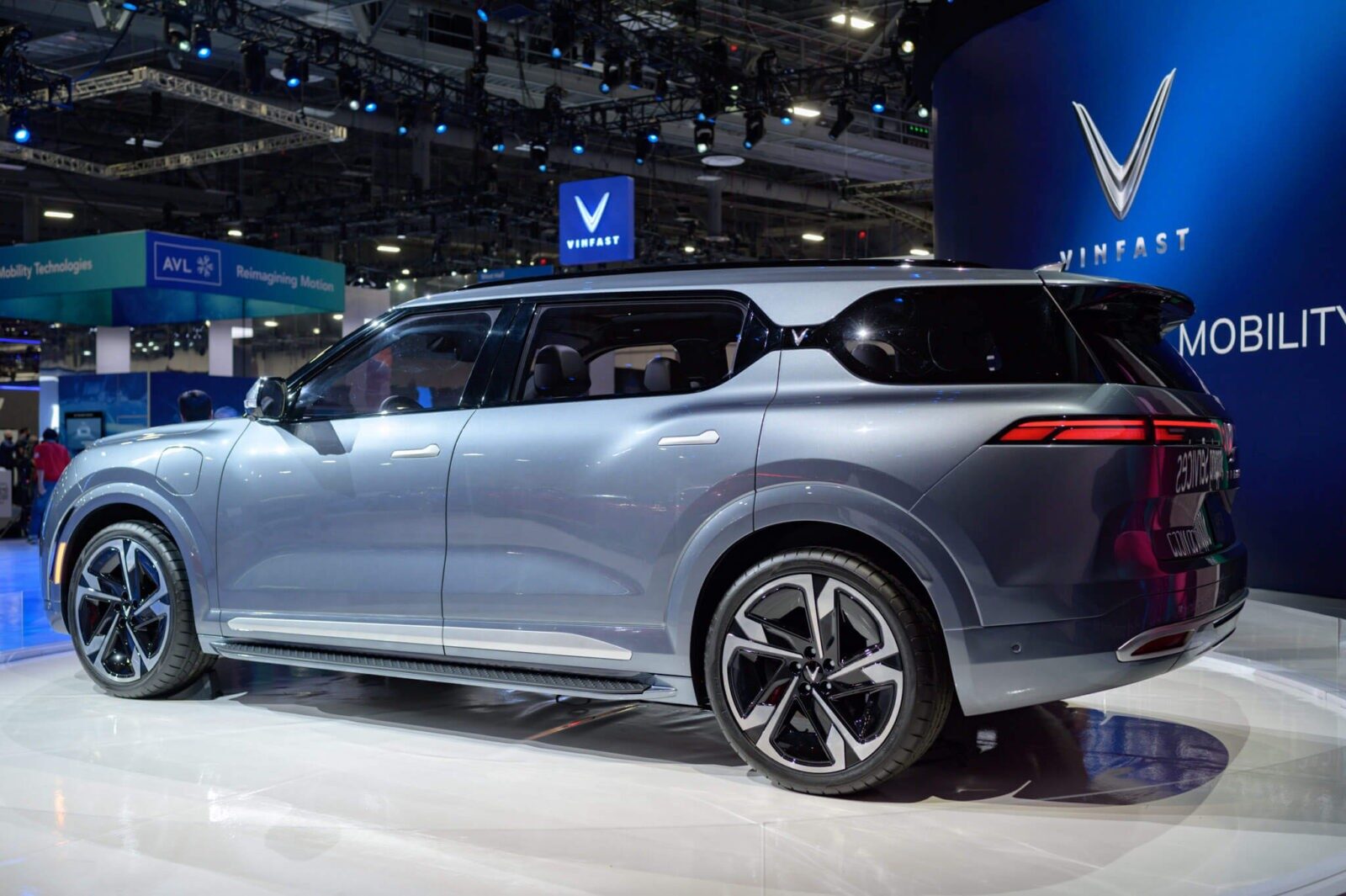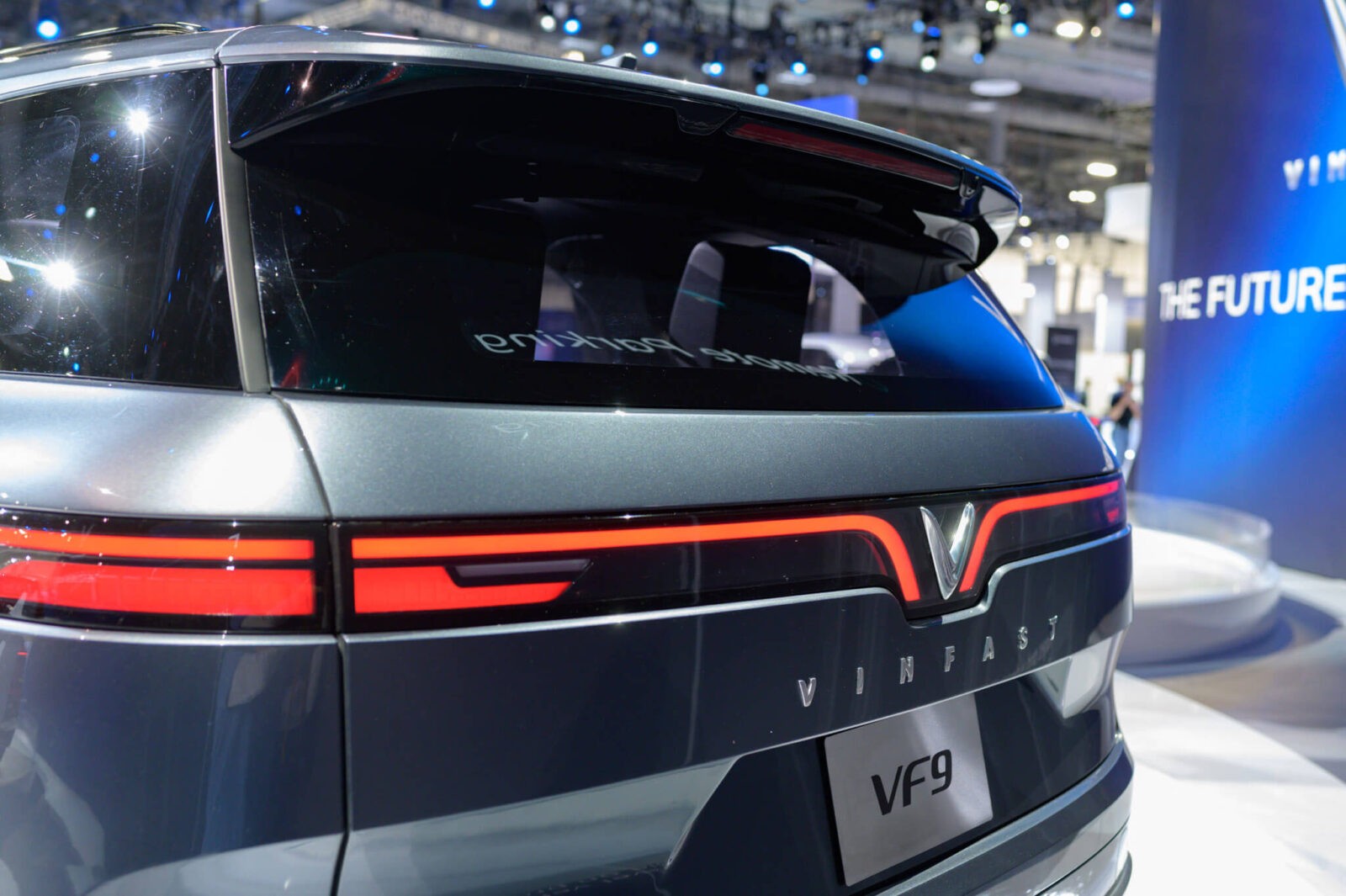 Tiến về phía đuôi VinFast VF9 hoàn toàn mới, các đường nét gân guốc tiếp tục xuất hiện, giúp hoàn chỉnh vẻ đẹp cơ bắp của một mẫu SUV full-size.