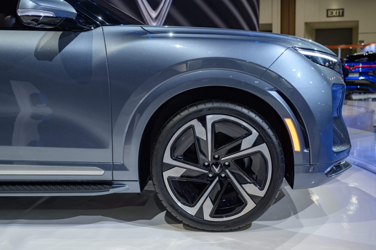 Bộ la-zăng đa chấu tạo hình bắt mắt, kích thước lớn (20-21 inch) là một trong những điểm tạo sức hút đặc biệt cho VinFast VF9 khi nhìn ngang. Tay nắm cửa thiết kế dạng ẩn hiện đại.