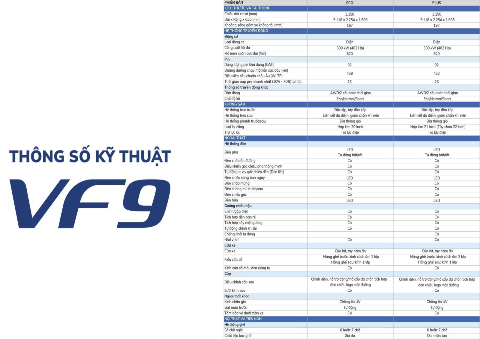 THÔNG SỐ VINFAST VF9